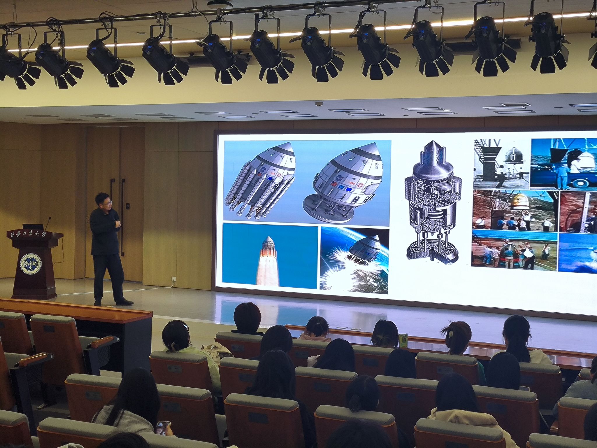 朱继宏从我国探月工程嫦娥四号任务引入,介绍了从古至今,人类怀揣对浩瀚星辰的无限向往探索太空星辰大海的8个瞬间,讲述了从首次登月的壮举,到国际空间站的建立,再到火星探测人类空间技术的研究与突破,展望了未来建立月球基地、火星殖民、飞向深空等宏伟计划,以及未来航天事业发展需要的能源、动力推进等关键理论与技术。他希望各位同学刻苦学习,掌握扎实的基础课知识和能力,为后续学习打好基础,在将来积极探索并运用自身专业知识解决科技前沿问题。