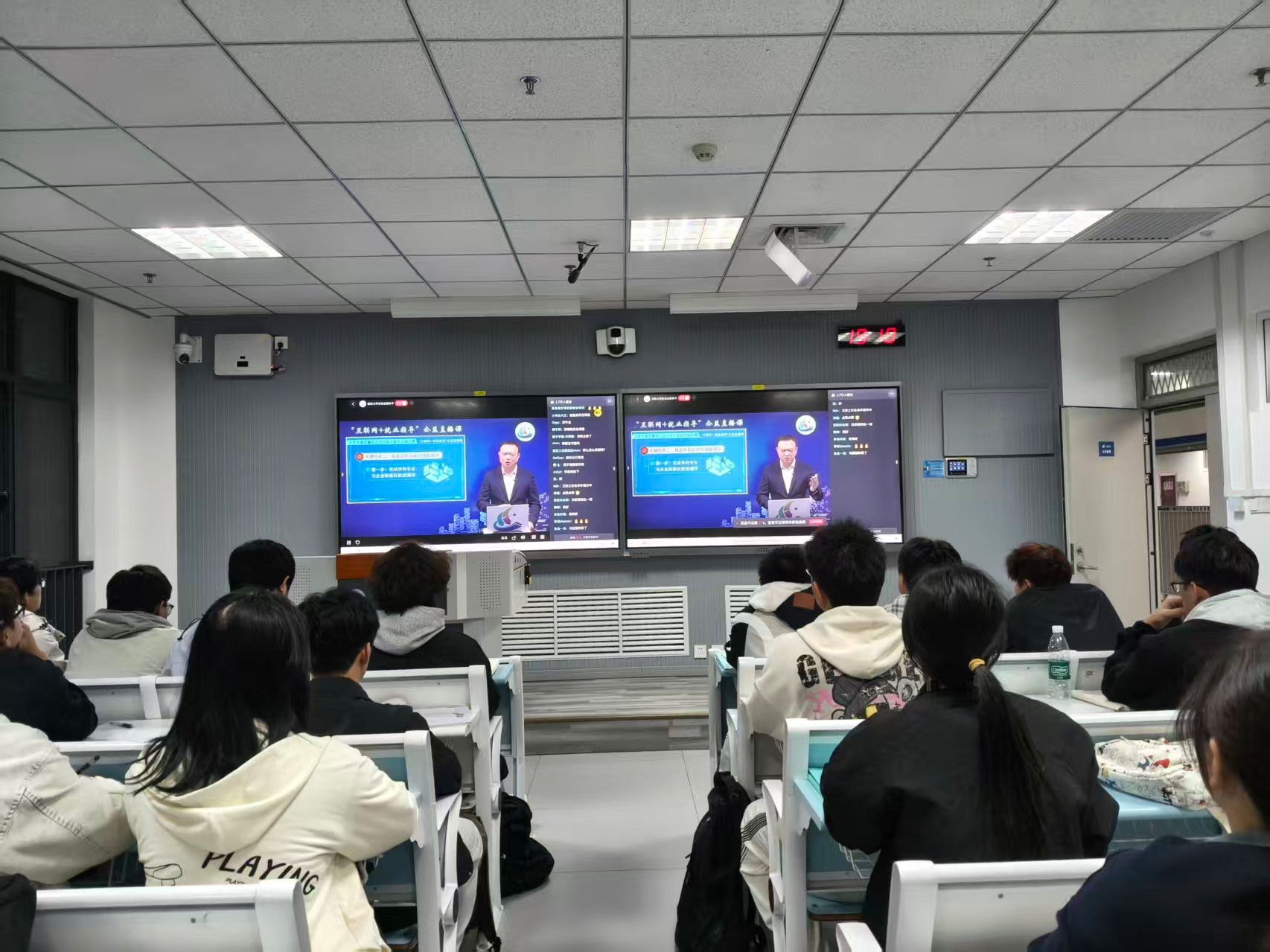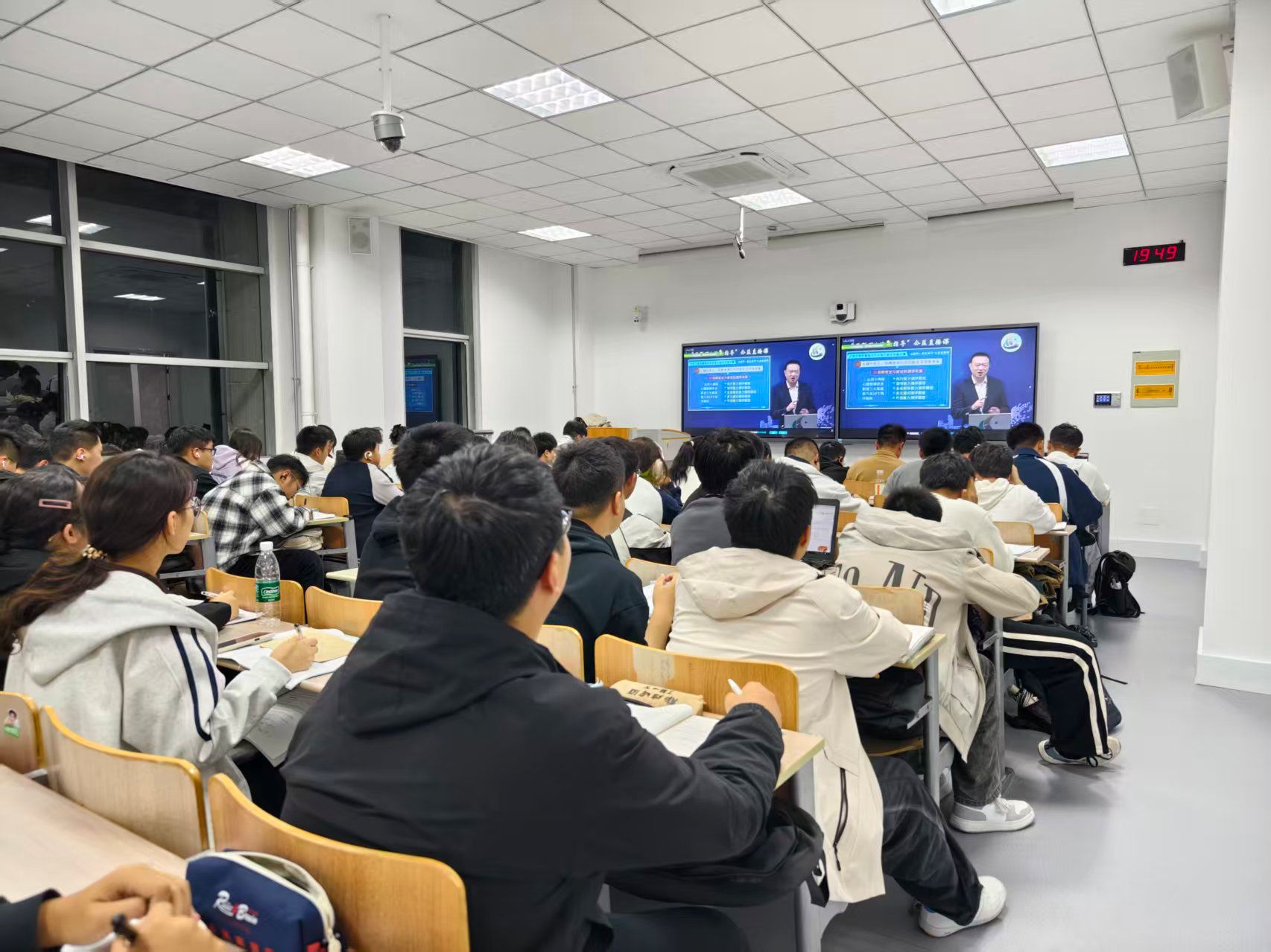 10月19日,无码流出 组织全体新生线上观看《大学生高质量就业的完备方案和关键步骤》直播。