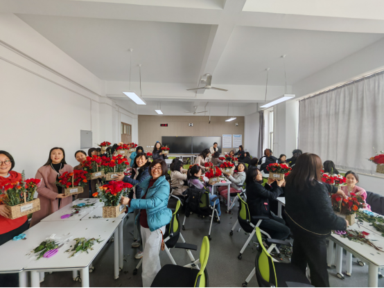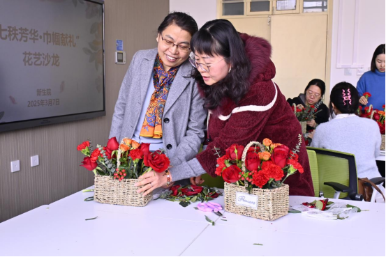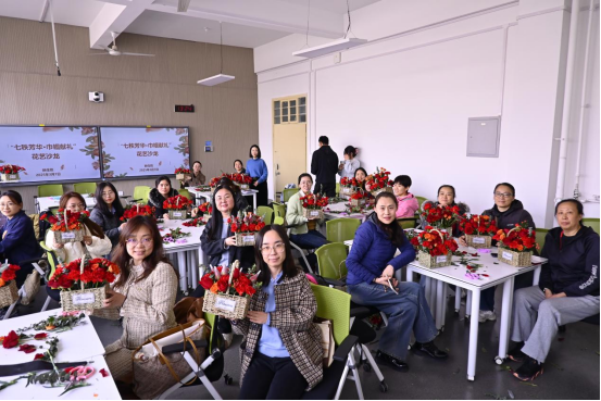 举办“七秩芳华·巾帼献礼”主题花艺沙龙,庆祝国际妇女节与建校70周年。女教职工通过创意插花,以艺术创作献礼校庆。