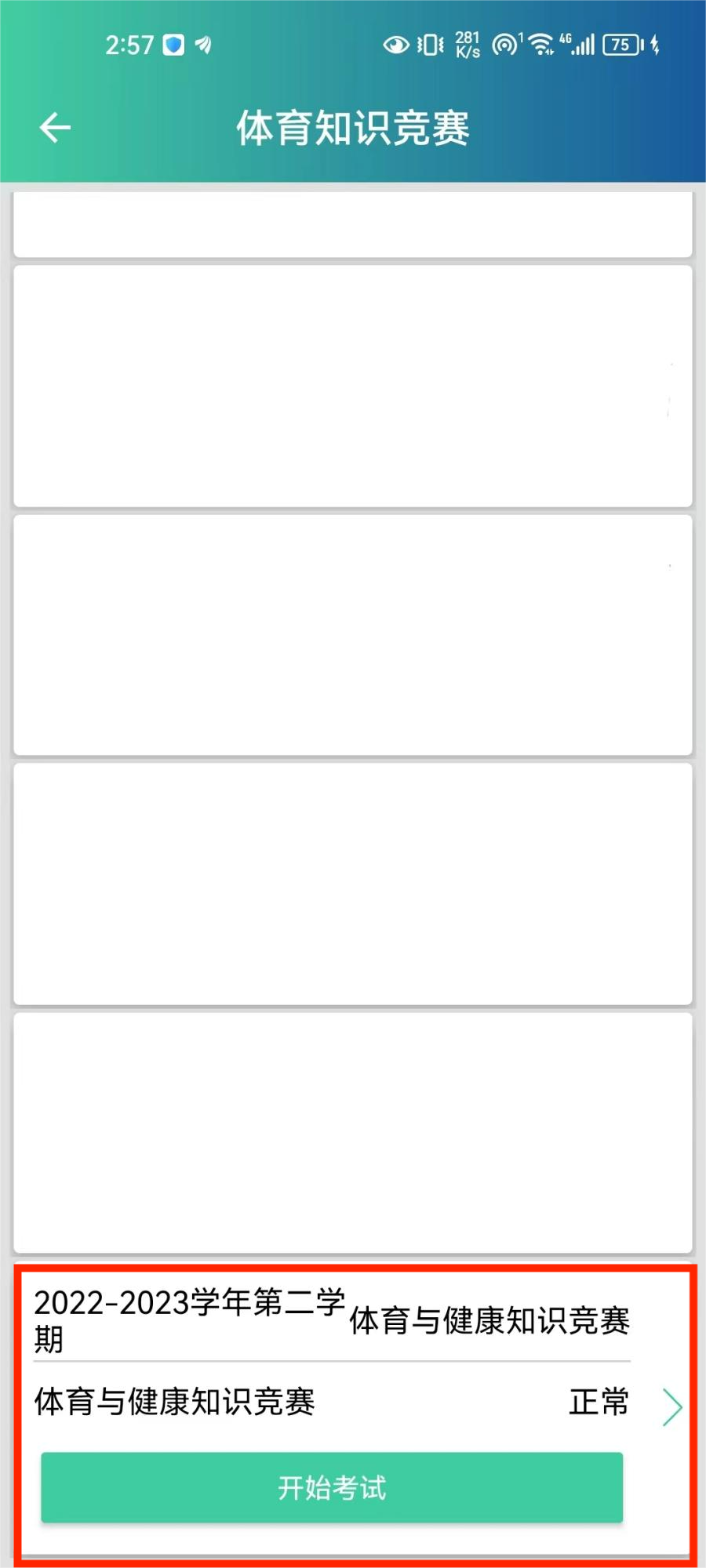 2、登录成功后,点击无码流出→更多(红色加号)→体育知识竞赛→点“开始考试”即可答题。