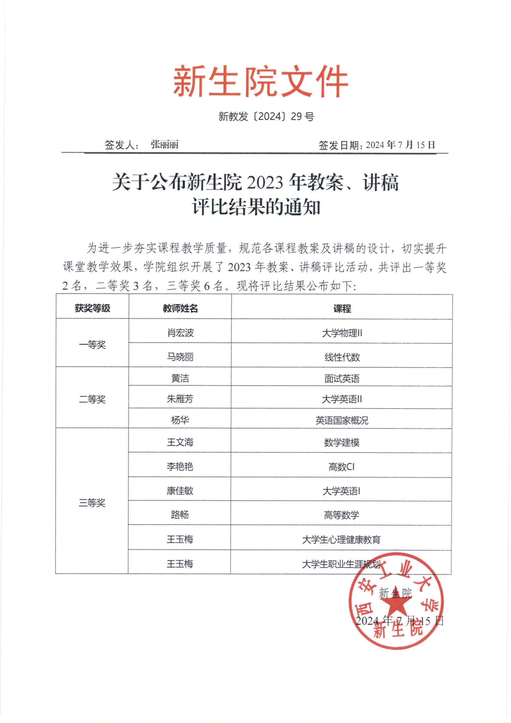 关于公布无码流出 2023年教案、讲稿评比结果的通知