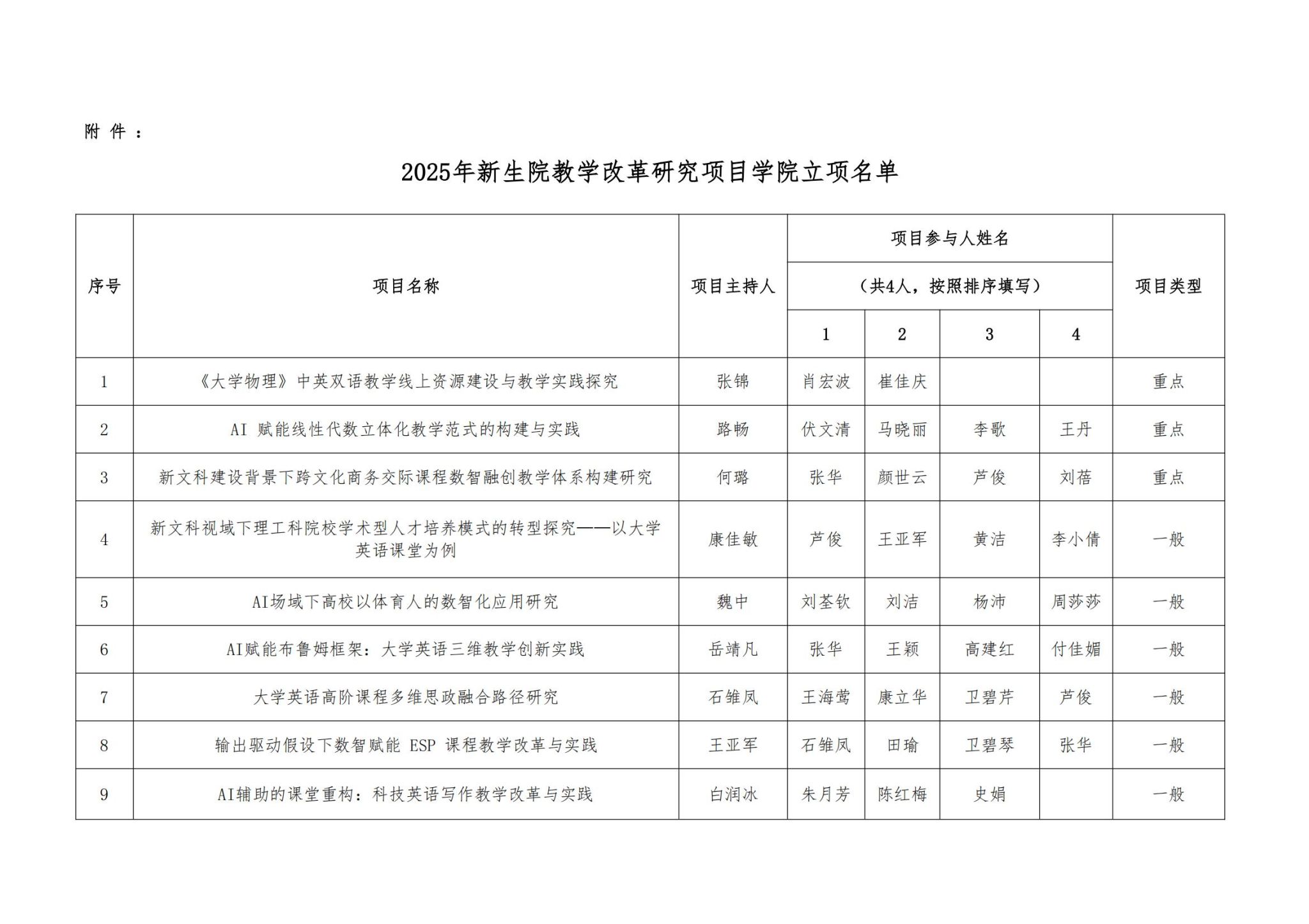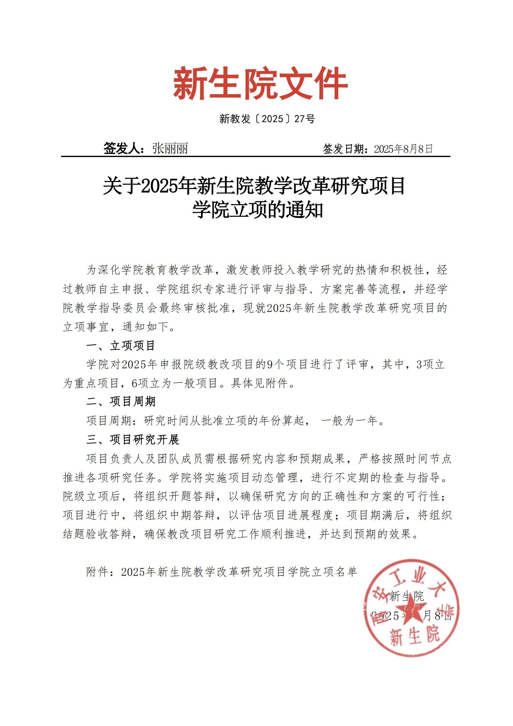 关于2025年无码流出 教学改革研究项目学院立项的通知