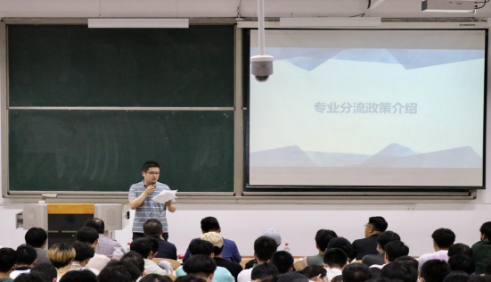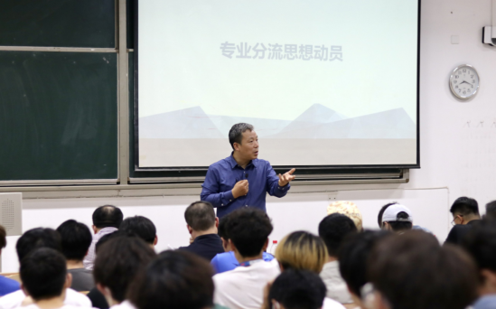 金洗郎副院长首先向大家介绍大类分流相关政策,强调专业分流要遵循“自愿申请、志愿顺序、成绩优先、公平公正”的原则。高培虎、朱生勃、靳长清、扈琳四位系室主任分别从专业发展、专业特色、师资力量、就业去向以及考研情况进行宣讲;随后,陈卫星副书记对专业分流工作进行思想动员;在提问交流环节中,师生进行了积极有效的互动。