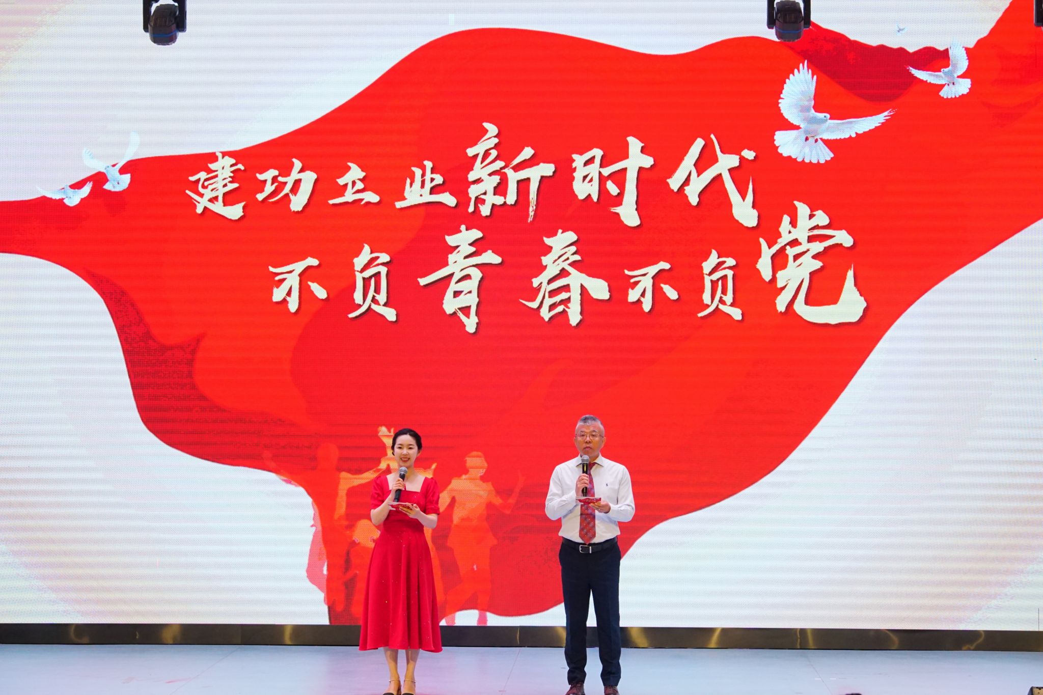 在“把一切献给党” 主题展示活动中,优秀教师代表张锦分享了她与学生相处的秘诀,在《大学物理》课程教学中如何融入思政元素,并寄语学生以梦为马、不负韶华。学生代表叶嘉怡等以舞台剧的形式演绎了社区精品“早鸟晨读”活动,实景展现大一学年的优良学风养成。郭佳睿同学的《青春强国,有我》演讲及合唱《有我》展现出青年学子在新时代、新征程中报效伟大祖国的责任之心和行动之力。