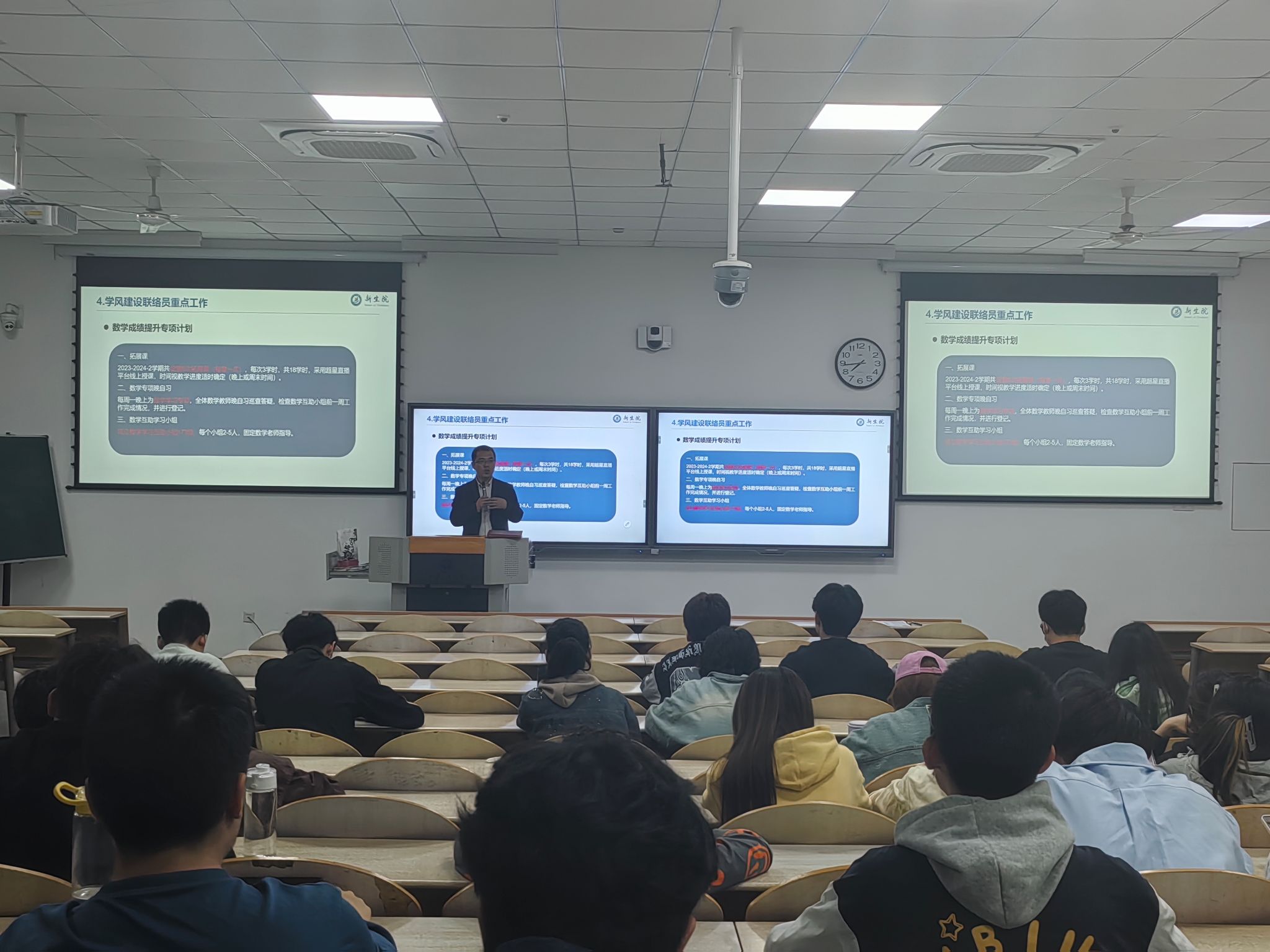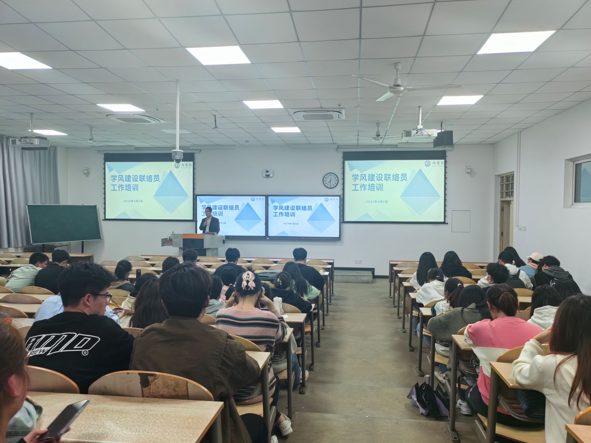 在教2-107举行学风建设联络员工作培训,布置大学英语四级提升工作方案。2023级全体学风建设联络员参加。