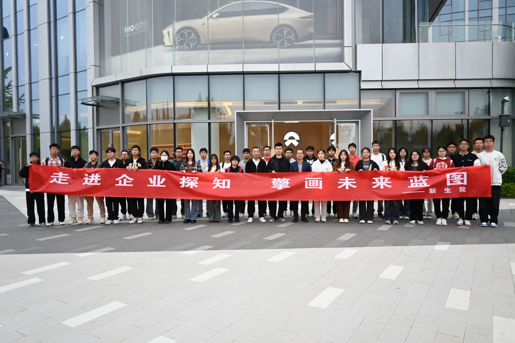 组织学生前往西安蔚来汽车开展企业认知活动,院团委书记刘雷波、进取社区长刘昊雨和46名学生参加活动。